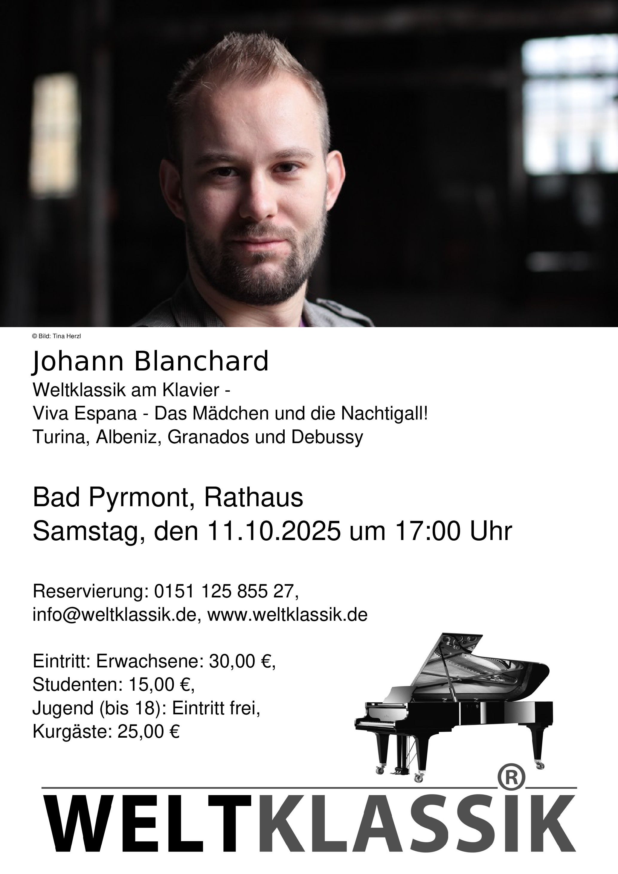 Reservierung unter 0151 125 855 27, info@weltklassik.de oder www.weltklassik.de.