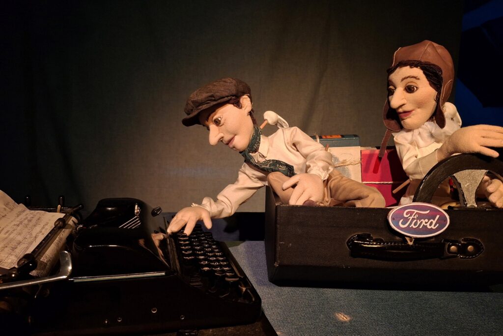 Ein Theaterstück mit Figuren und einem Schauspieler