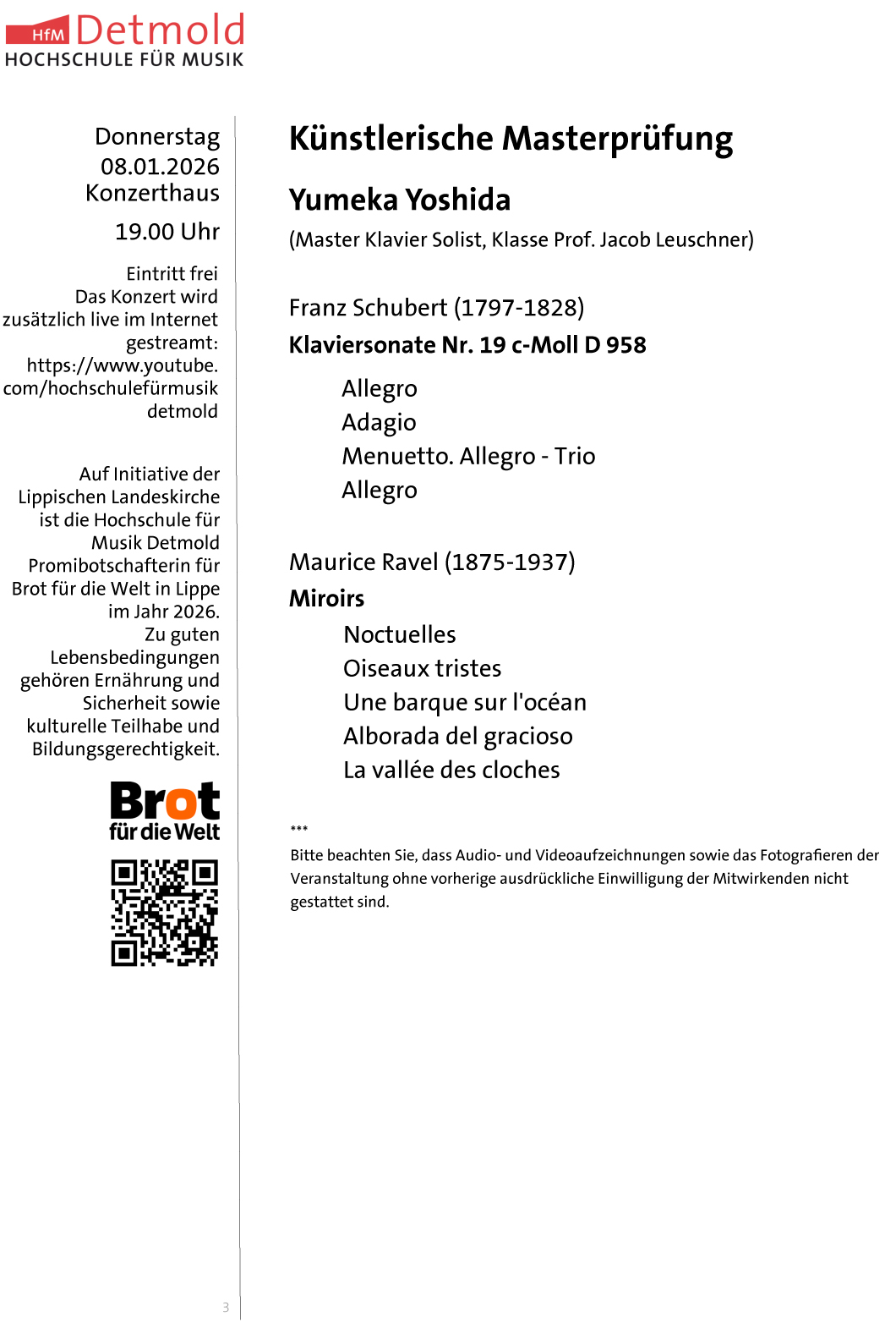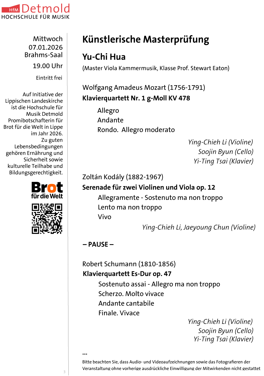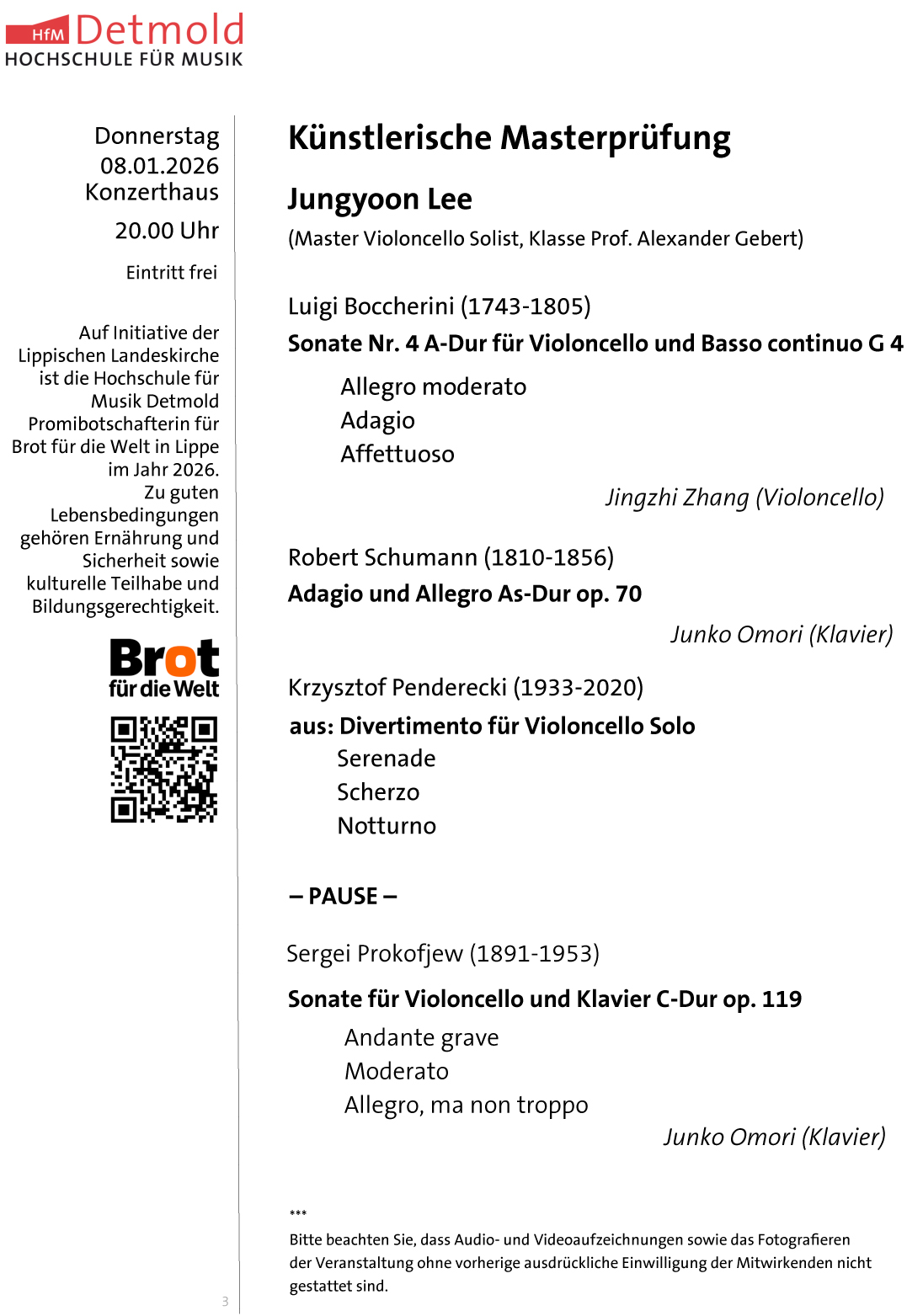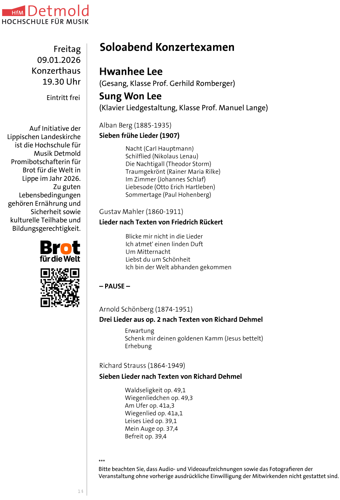 | Künslerische Masterprüfungen der Hochschule für Musik Detmold- Eintritt frei