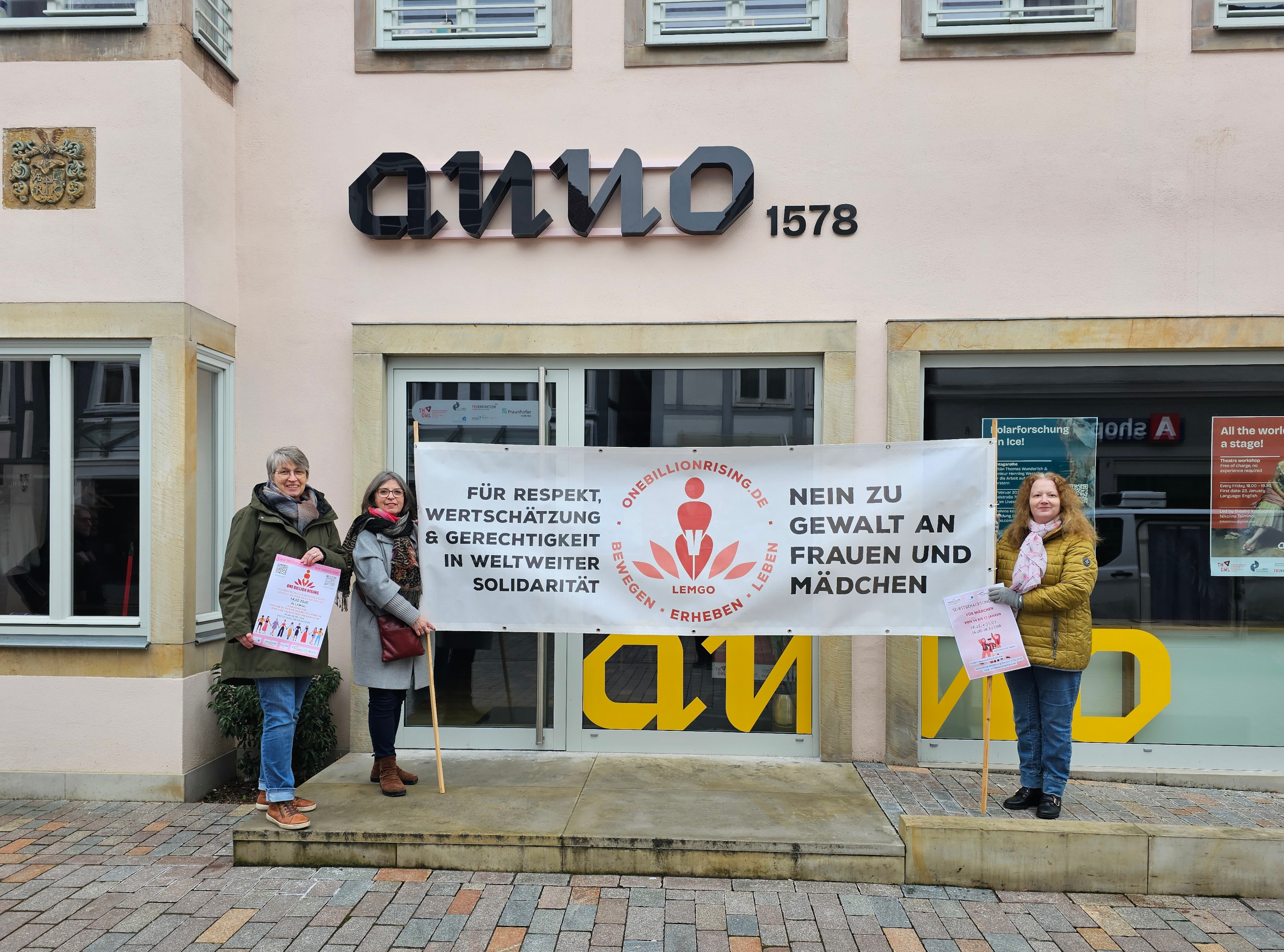 Um 10:30 Uhr öffnen sich am 14. Februar die Türen des anno 1578 (Mittelstraße 70). Dort gibt es Informationen zu Unterstützungsangeboten für Mädchen und Frauen, die Gewalterfahrungen haben oder fürchten. Um 11:30 Uhr startet der Tanzprotest. An drei Stellen in der Mittelstraße können sich Interessierte dem Tanz anschließen. Ein Anleitungsvideo der Tanzschule Hey ist auf www.lemgo.de verlinkt. Um 12 Uhr enden der Tanzprotest und auch das anno 1578 schließt seine Türen.