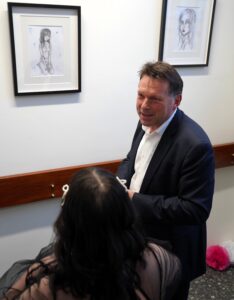 Philin T. hat Bürgermeister Frank Hilker und Gäste bei der Eröffnung durch die Ausstellung geführt und erläutert, mit welchen Techniken sie gearbeitet hat und welche Emotionen sie dadurch zum Ausdruck bringen wollte. Fotos: Stadt Detmold