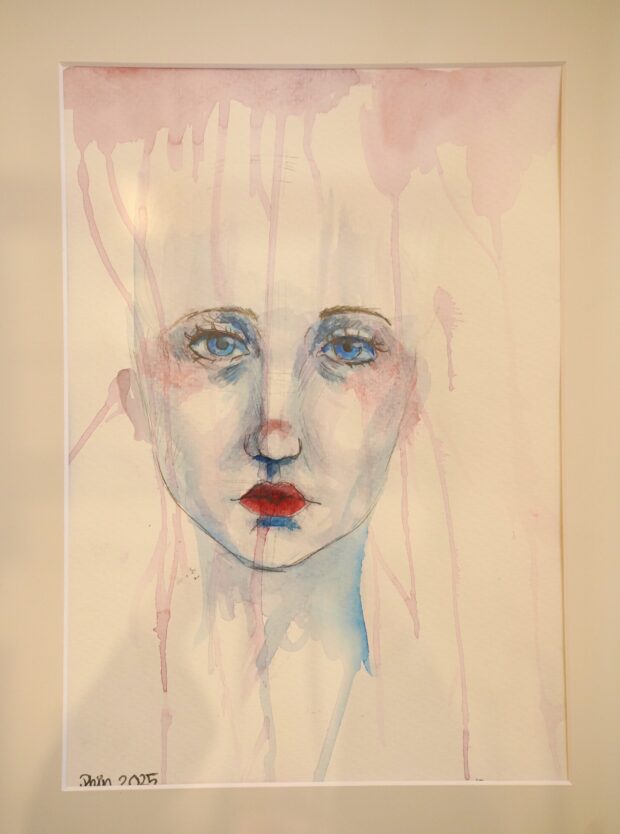 Ein Werk aus der Ausstellung „Jugendliche Emotionen“ der 17-jährigen Künstlerin Philin T.: Eine eindrucksvolle Zeichnung, die Verletzlichkeit und Tiefe jugendlicher Gefühle einfängt.