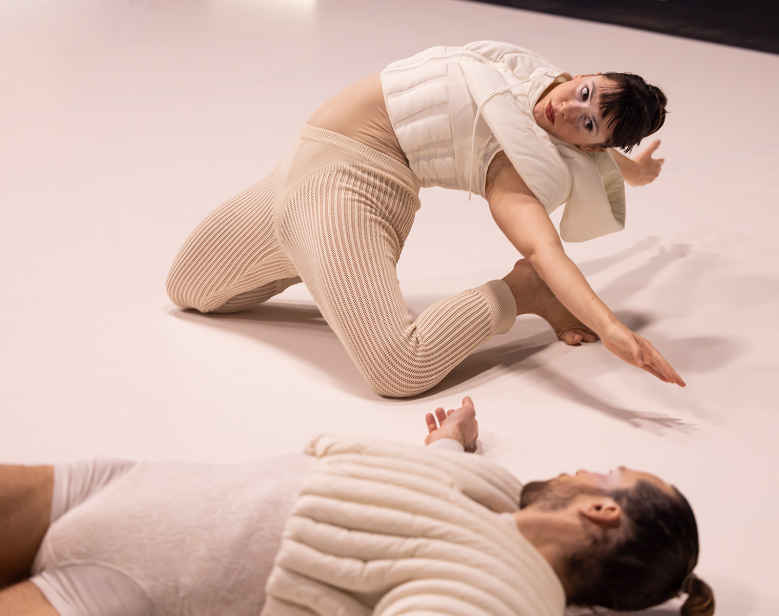 Wir laden zum Perspektivwechsel ein! Umringt vom Publikum verhandelt Felix Landerers Quintett eine arrangierte Verbindung zwischen Zusammenhalt, Konflikt und Koexistenz. Marion Zurbach erforscht in sieben Experimenten die Kapazitäten zwischenmenschlicher Verbundenheit und sinnlicher Wahrnehmung.