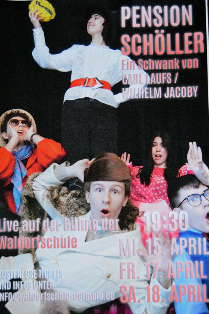 Die 12. Klasse der Waldorfschule hat sich was vorgenommen. Sie bringen die Posse „ Pension Schöller“, ein Klassiker von Karl Laufs und Wilhelm Jacoby, in einer Bearbeitung von Hugo Wiesner, auf die „Bühne“ der Waldorfschule als Gemeinschaftsprojekt und Finale ihrer schulischen Laufbahn. Wir durften schon vorab einen Blick in die Probearbeiten werfen und waren angenehm überrascht. Unter der Leitung der Theaterpädagogin Lena Hillebrand, selbst Absolventin der Schule, werden die Schülerinnen und Schüler ein tolles Stück auf die Bühne bringen, denn alles müssen die Schüler selbst machen von der Auswahl des Stückes, über Requisiten, Bühnenbild und Kostüme bis zum Plakat alles ist gemeinsam geplant und steht nun kurz vor der Vollendung dem hochverehrten Publikum zu präsentieren, dass hoffentlich zahlreich erscheinen – und großzügig spenden wird. Denn der Eintritt ist frei.