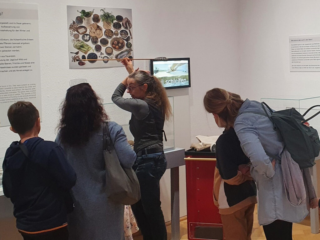 Die Führung verbindet anschauliche Einblicke mit aktivem Mitmachen und richtet sich besonders an Familien. Von den Jägerinnen und Sammlern der Altsteinzeit bis zu den ersten Bauern der Jungsteinzeit wird deutlich, wie sehr diese frühen Entwicklungen unser heutiges Leben prägen.