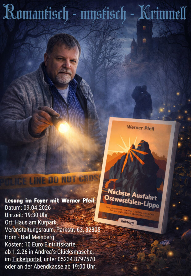 „Werner Pfeil ist ein vielseitiger Autor, der Krimis, Romane, Sachbücher und Fantasy-Märchen schreibt. Besonders gern verfasst er Kurzgeschichten. Seine schauplatzorientierten Kriminalromane spielen am Rande der Senne und des Wahnsinns. Diese Geschichten sind heimisch, tückisch und vor allem heimtückisch.