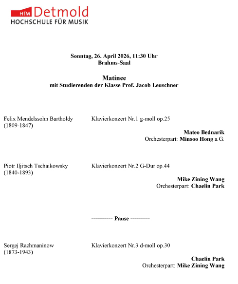 | Künslerische Masterprüfungen der Hochschule für Musik Detmold- Eintritt frei