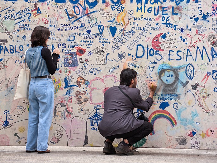 Ausstellung | Gemeinsam malen auf der Terrasse des MINSK Kunsthaus in Potsdam im Rahmen der Ausstellung »Oscar Murillo. Kollektive Osmose«
