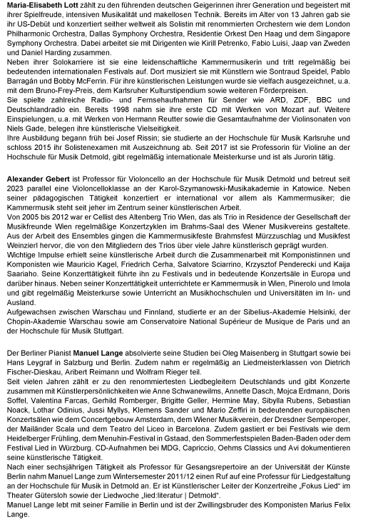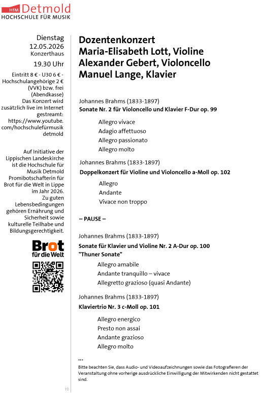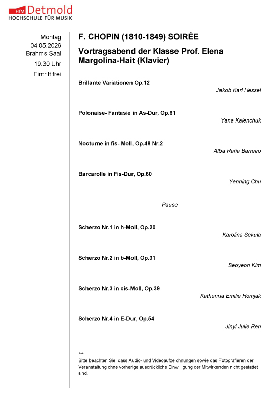 | Künslerische Masterprüfungen der Hochschule für Musik Detmold- Eintritt frei