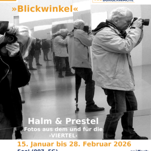 Fotoausstellung: »Blickwinkel« Fotos aus dem und für die ›Viertel‹ Von Mitte Januar bis Ende Februar 2026 ist im Stadtteilzentrum Bürgerwache am Siegfriedplatz die Fotoausstellung „Blickwinkel – Fotos aus ...